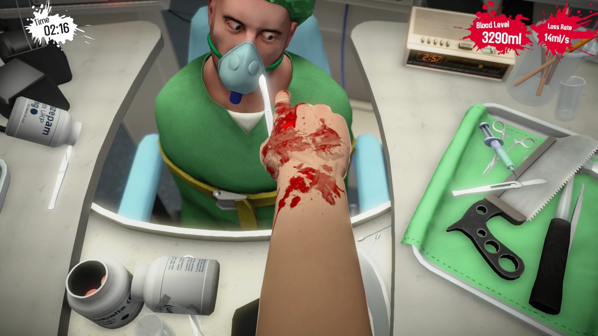 Τι είναι όμως το Surgeon Simulator; Είναι ο τίτλος που ζητά από τον παίκτη να ξεκινήσει με τα “εύκολα”, δηλαδή με μεταμόσχευση καρδιάς, να επεκταθεί σε μεταμόσχευση νεφρών, όταν δεν ασχολείται με εξαγωγές ματιών και δοντιών. Τα τελευταία δύο “αντικείμενα” δεν υπήρχαν στην έκδοση για PC (το ένα όμως εμφανίστηκε σε εκδόσεις για mobile) και αποτελούν ουσιαστικά μέρος των προσθηκών. Στην πράξη ο παίκτης ελέγχει ένα και μοναδικό χέρι. Ελέγχει το ύψος στο οποίο κινείται, περιστρέφει τον καρπό, με shoulder buttons ανοίγει και κλείνει αντίχειρα και δείκτη ή τα υπόλοιπα δάκτυλα, με την ελπίδα η δύναμη της λαβής και η ακρίβεια να οδηγεί στο σωστό χειρισμό του όποιου εργαλείου. Και λέμε “του όποιου” διότι αν προλάβετε να αλλάξετε καρδιά πριν πεθάνει ο ασθενής από αιμορραγία (από το ρυθμό της ουσιαστικά ορίζεται και ο περιορισμός χρόνος) αφού ανοίξετε το θώρακα του ασθενούς με σφυρί και πετάξετε στο πάτωμα τους πνεύμονες επειδή σας εμποδίζουν, η επιτυχία είναι δεδομένη.